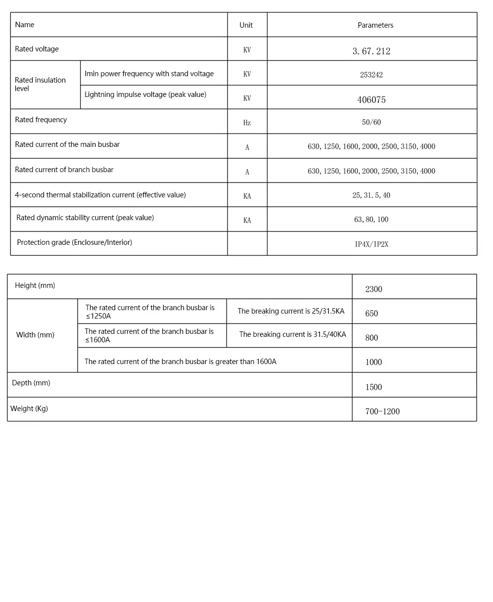 The switch cabinet is composed of two major parts: the fixed cabinet body and the pull-out part (referred to as the trolley). The outer shell of the cabinet and the partitions of each functional unit are made of aluminized zinc steel plates processed by CNC machine tools and then assembled with bolts. This cabinet is precisely sized and not prone to deformation.The protection grade of the switchgear enclosure is IP4X, and the protection grade when the circuit breaker room door is open is IP2X. It can be assembled into a single-layer or double-layer cabinet according to the user's requirements.