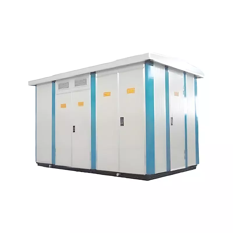 This prefabricated substation uses channel steel as the base and Angle steel as the box frame (the box is made of sandwich color steel plate).